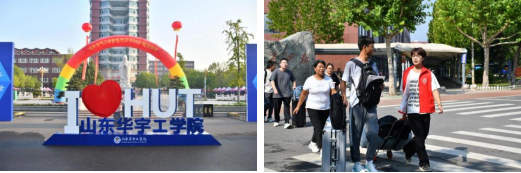 在华宇高耸的行政楼前,高年级同学积极投入志愿服务,发挥朋辈引领,提供热情服务,新同学们的脸上洋溢着幸福的笑容,阳光洒在他们身上,仿佛为他们披上了一层金色的光辉。